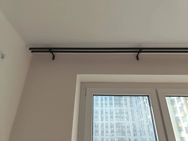 Разметим место для монтажа, соберём карниз, установим на потолок и закрепим. Работа займёт 30–40 мин. Будет шумно. Высота стен не более 3 м. Стремянку при необходимости предоставляет клиент.