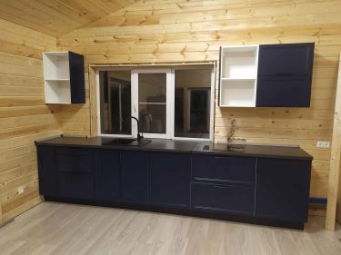 Соберём каркасы, навесим шкафы, дверцы и фурнитуру. Всё отрегулируем. Установим, мойку с сифоном и смесителем.